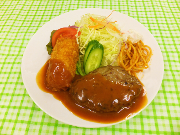 Aセット ハンバーグ&エビフライ・・¥1000 Bセット ハンバーグ&カラアゲ・・・¥950 Cセット ハンバーグ&エビクリーム・¥950 |